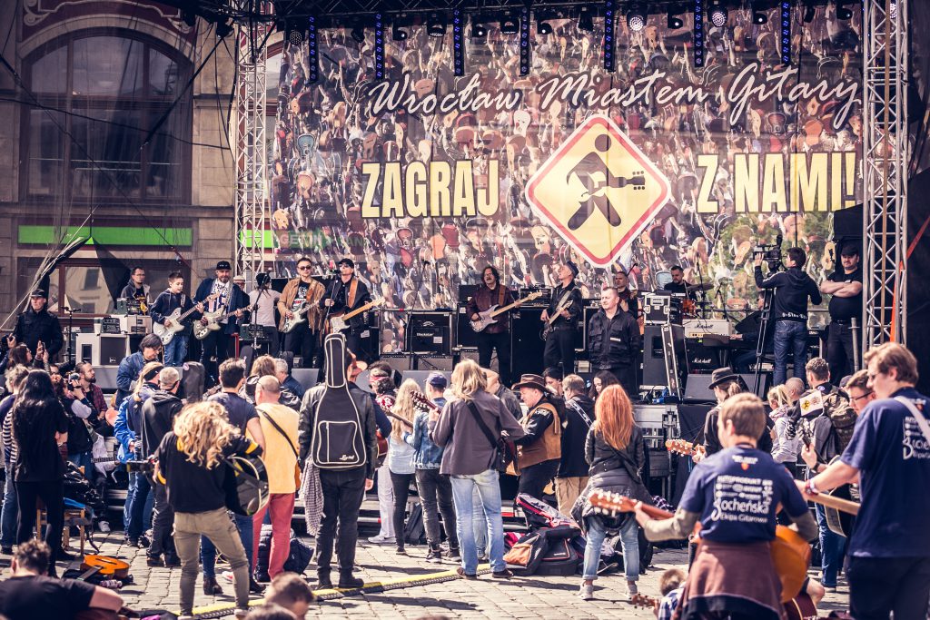 Już niedługo, bo 19 czerwca odbędzie się kolejna edycja Gitarowego Rekordu Świata! W tym roku gitarowe święto odbędzie się hybrydowo. To znaczy na żywo na Wrocławskiej pergoli (Kompleks Hali Stulecia we Wrocławiu), oraz przed ekranami komputerów nie tylko w Polsce, ale i dalej na świecie. W przyszłym roku impreza prawdopodobnie wróci na Wrocławski rynek.